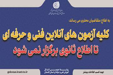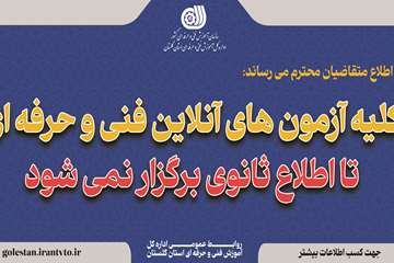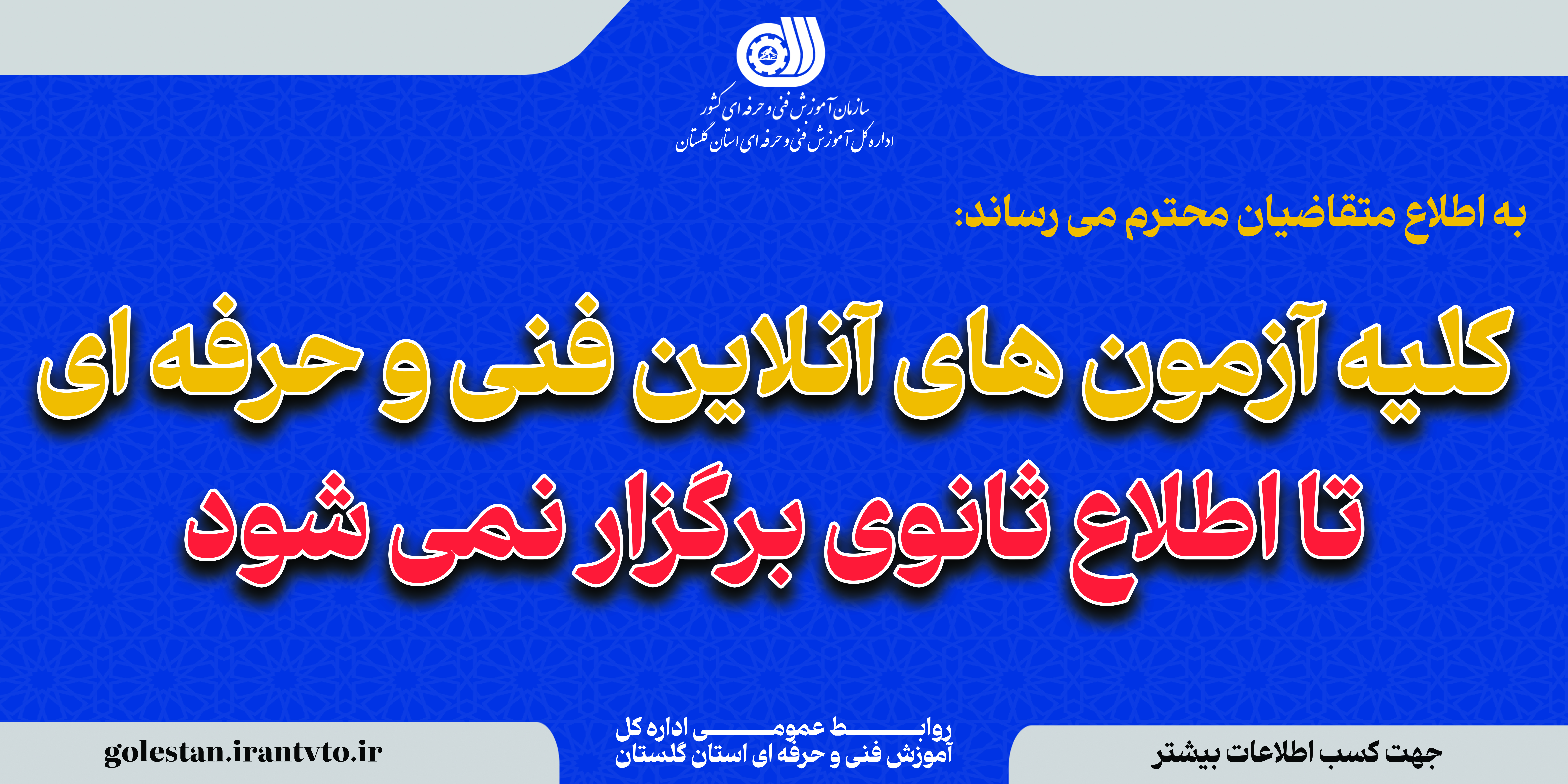 آزمون های آنلاین فنی و حرفه ای تا اطلاع ثانوی برگزار نمی شود