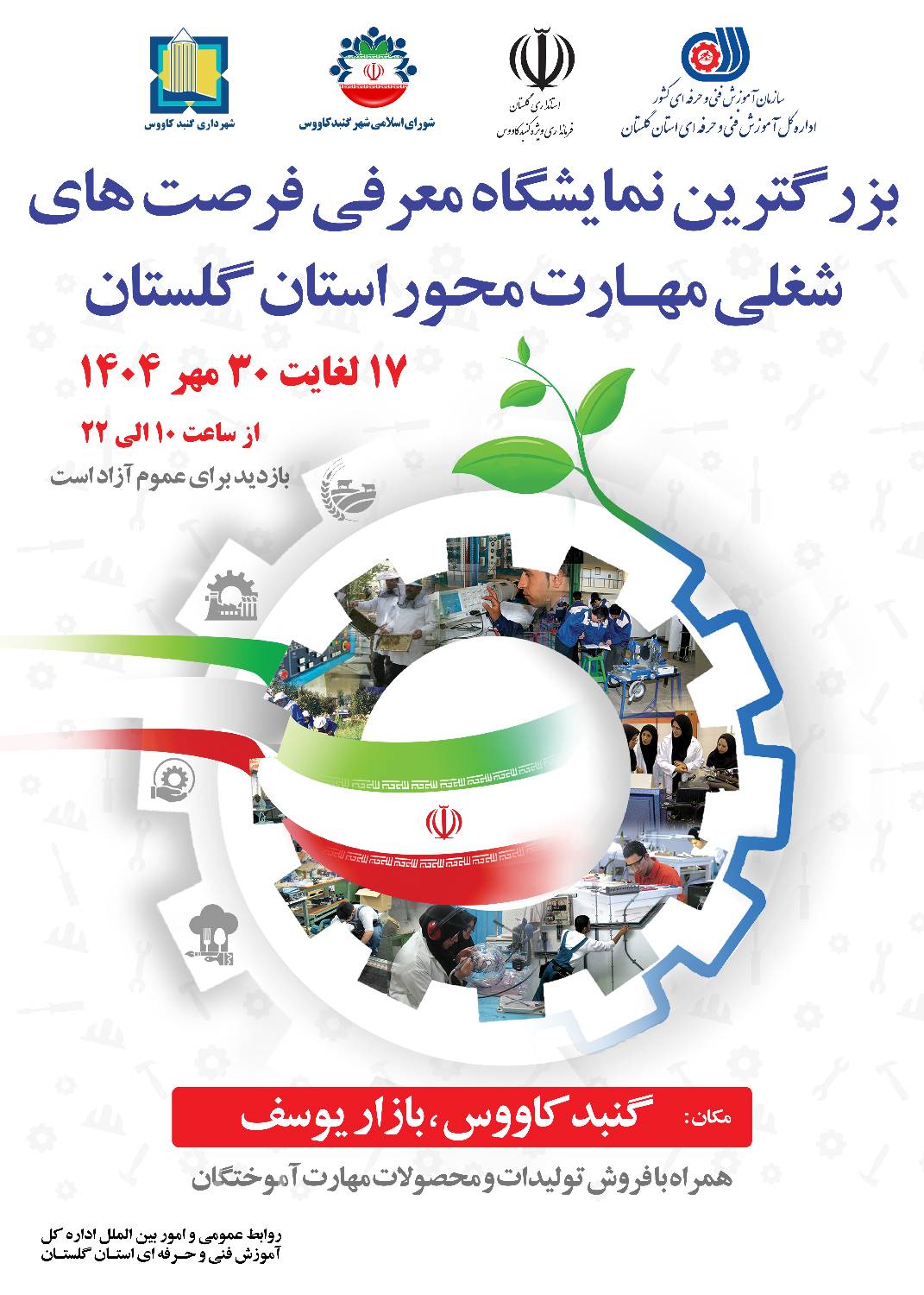 به گزارش روابط عمومی اداره کل آموزش فنی و حرفهای استان گلستان، بزرگترین نمایشگاه معرفی فرصتهای شغلی مهارتمحور استان گلستان از ۱۷ تا ۳۰ مهرماه ۱۴۰۴ در بازار یوسف شهر گنبدکاووس برگزار میشود.