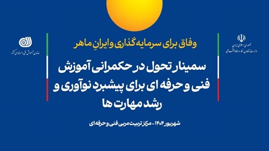 سمینار «تحول در حکمرانی آموزش‌های فنی‌و‌حرفه‌ای برای پیشبرد نوآوری و رشد مهارت‌ها با هدف تحول در حکمرانی آموزش‌های مهارتی» به همت سازمان آموزش فنی‌وحرفه‌ای کشور و با مشارکت یونسکو-یونیووک و دفتر یونسکو در تهران و حمایت مالی آژانس همکاری بین‌المللی کره‌جنوبی(کوییکا)، ۱۷ و ۱۸ شهریورماه در مرکز تربیت مربی فنی‌وحرفه‌ای، برگزار می‌شود.